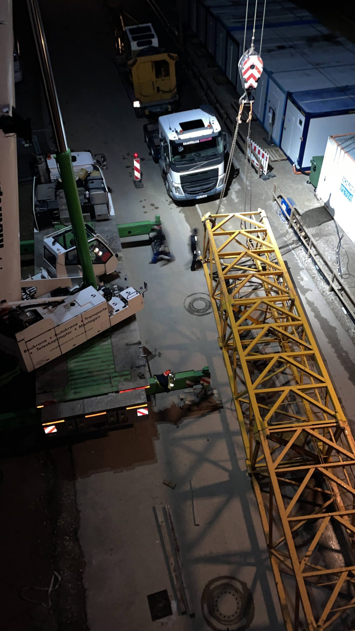 Schneller Krantausch: Innerhalb kürzester Zeit wurde der Autokran gegen ein Modell mit längerem Mast ausgetauscht.