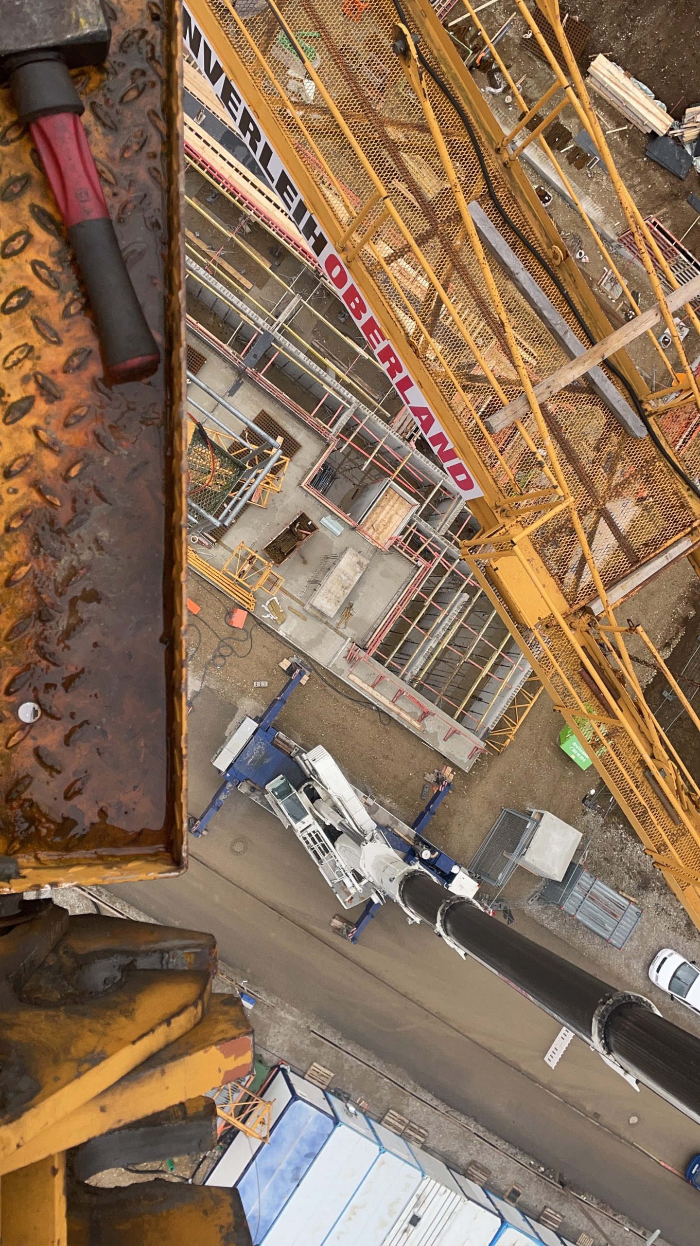 Unser bereits vor Ort befindlicher Autokran war für die ursprüngliche Höhe perfekt dimensioniert, stieß bei den zusätzlichen 9 Metern jedoch an seine technischen Grenzen.