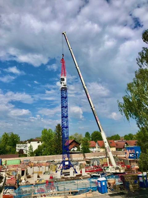 In Herrsching am Ammersee steht seit letzter Wochen ein Liebherr 280 EC-H aus Kranverleih Oberland Mietpark. Damit steht am Ammersee im Starnberger Landkreis einer unserer größten Obendreher. Die Montage erfolgte mit unserem Liebherr 220to. Autokran mit Teilballast. Mit einer Hakenhöhe von 35 Metern und einer Ausladung von 55 Metern hat man nicht nur einen wunderbaren Ausblick über den See und die Gemeinde Herrsching, sondern kann mit der maximalen Hubkraft von 12 Tonnen auch äußerst effektiv auf der Baustelle arbeiten.