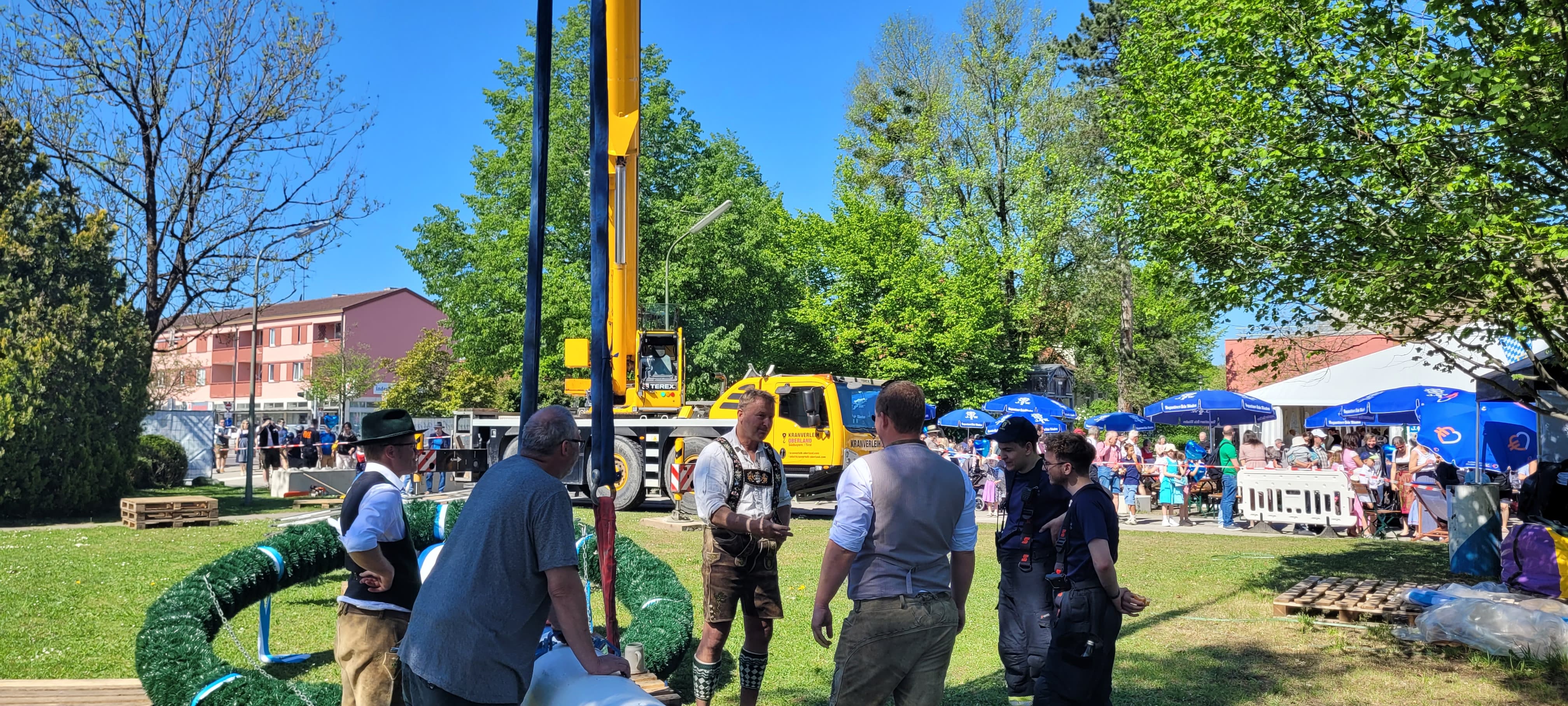 Auch in diesem Jahr durften wir einen Beitrag zur bayerischen Tradition leisten: In Neuried unterstützte unser Team das Maibaumaufstellen mit einem 60 Tonnen Autokran – zuverlässig, sicher und präzise.