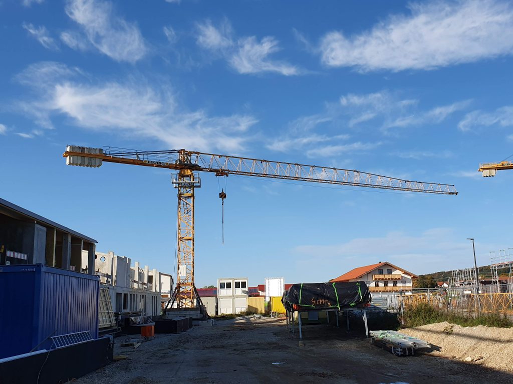 In der Heimatortschaft von Thomas Müller, Pähl am Ammersee entsteht derzeit ein Neubau der Bäckerei Kasprowicz. Hierfür sind wir nicht nur mit einigen Autokranarbeiten im Einsatz sondern auch mit einen Liebherr 110 EC-B vertreten. Auftraggeber ist hierbei die Firma Wiehag aus Österreich. Aufgrund des schnellen Arbeitstempo konnten wir unseren Baukran schon nach gut drei Wochen auf die zweite Position umbauen.