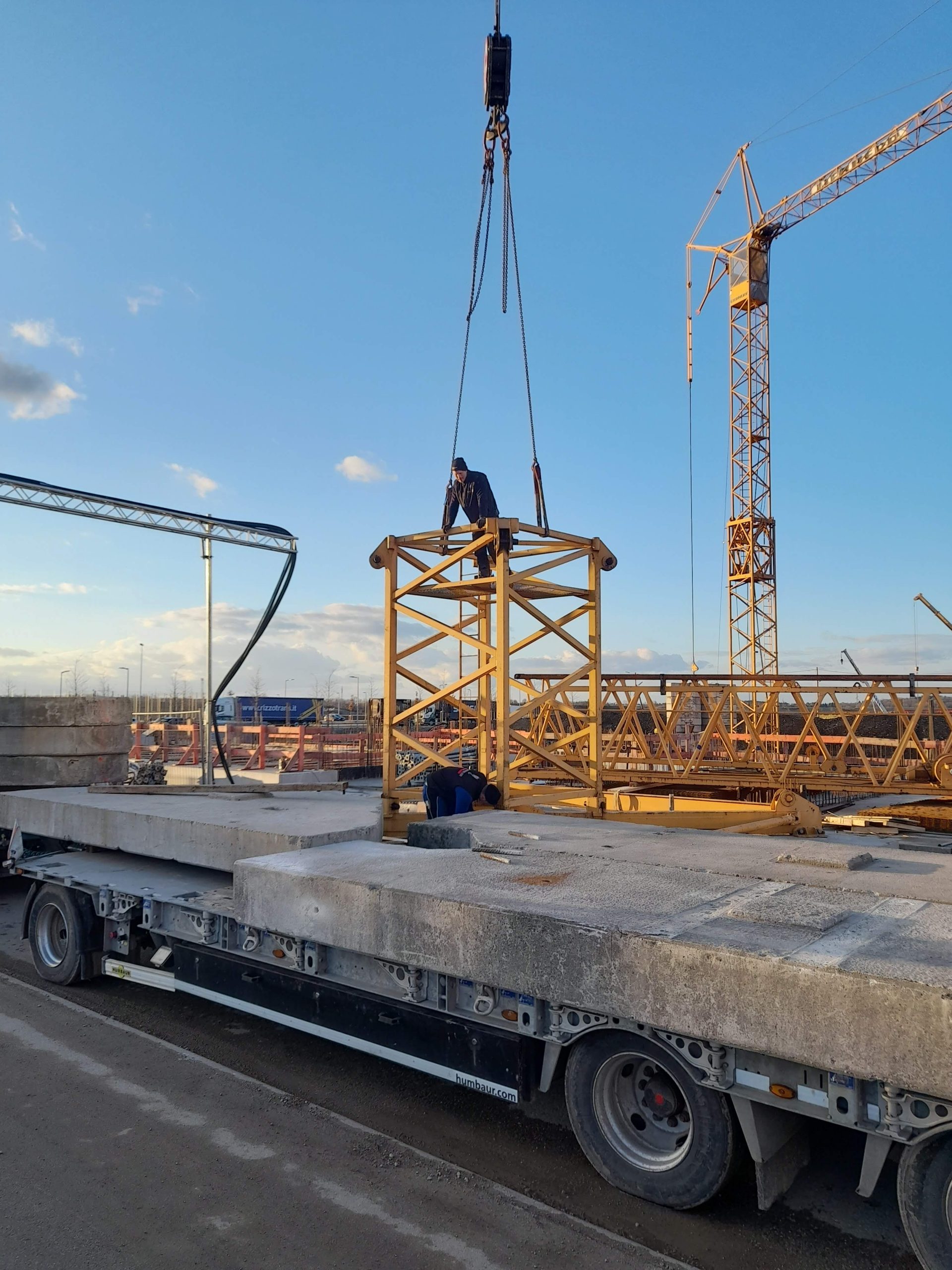 Logistik-Power: Zusätzliche Turmstücke und der notwendige Zentralballast wurden umgehend verladen und zur Baustelle transportiert.